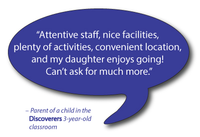 “Although it is a pleasure to drop my 17-month-old son with Ms. Leta and Ms. Michelle in the Infant B classroom each day, Tuesdays are a real treat. Because of my schedule, I bring my older child to drop off and Ms. Leta always greets him warmly and offers him breakfast to go! My son and I always feel welcome to stay, have a snack, and play with my younger son and his friends as long as we like. That warm welcome makes me feel like the red carpet has been rolled out for us! Thank you Ms. Leta and Ms. Michelle and everyone who makes Tuesday, and every day, a great day. We love you. ”